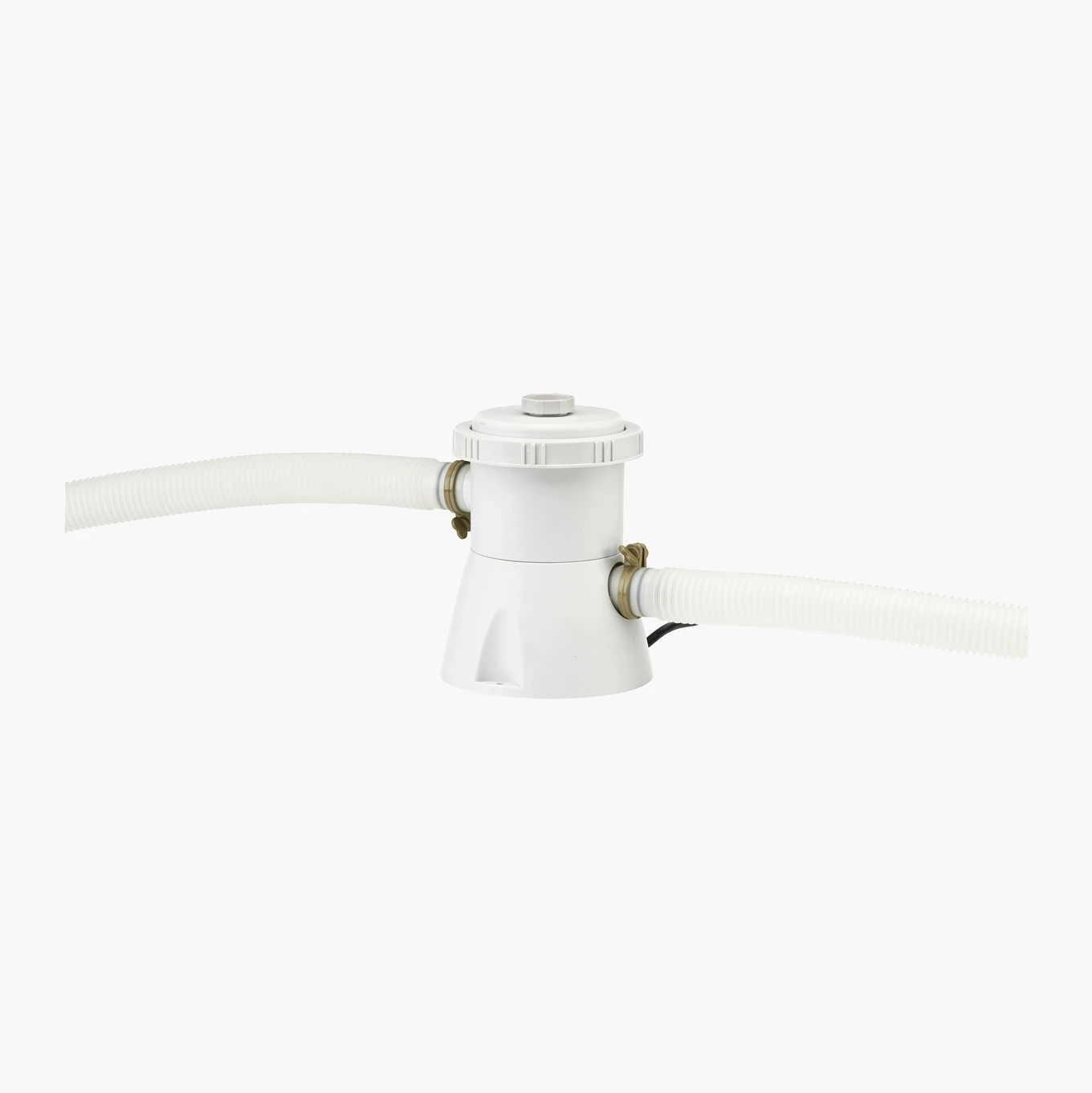 En filterpumpe er et rensningsudstyr, der cirkulerer poolvandet. Filtreringen sker ved, at vandet passerer gennem en filterpatron. Den opfanger snavs og små partikler. Poolpumpen pumper derefter rent og klart vand tilbage i poolen.