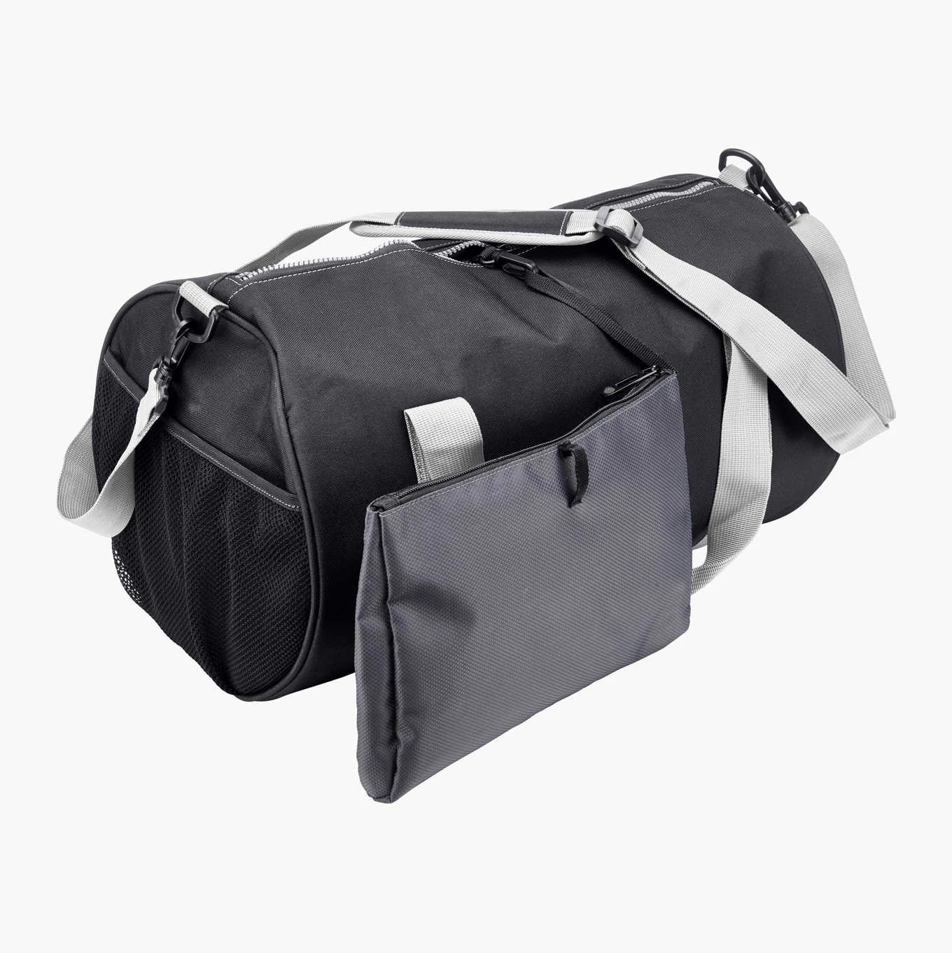 Praktisk overnatningstaske med håndtag og justerbar skulderrem. Tasken har en udtagelig toilettaske med lynlås samt en netlomme på ydersiden. Fremstillet af polyester. Lukkes med lynlås. Dimensioner: (L) 46 x (B) 26 x (H) 26 cm.